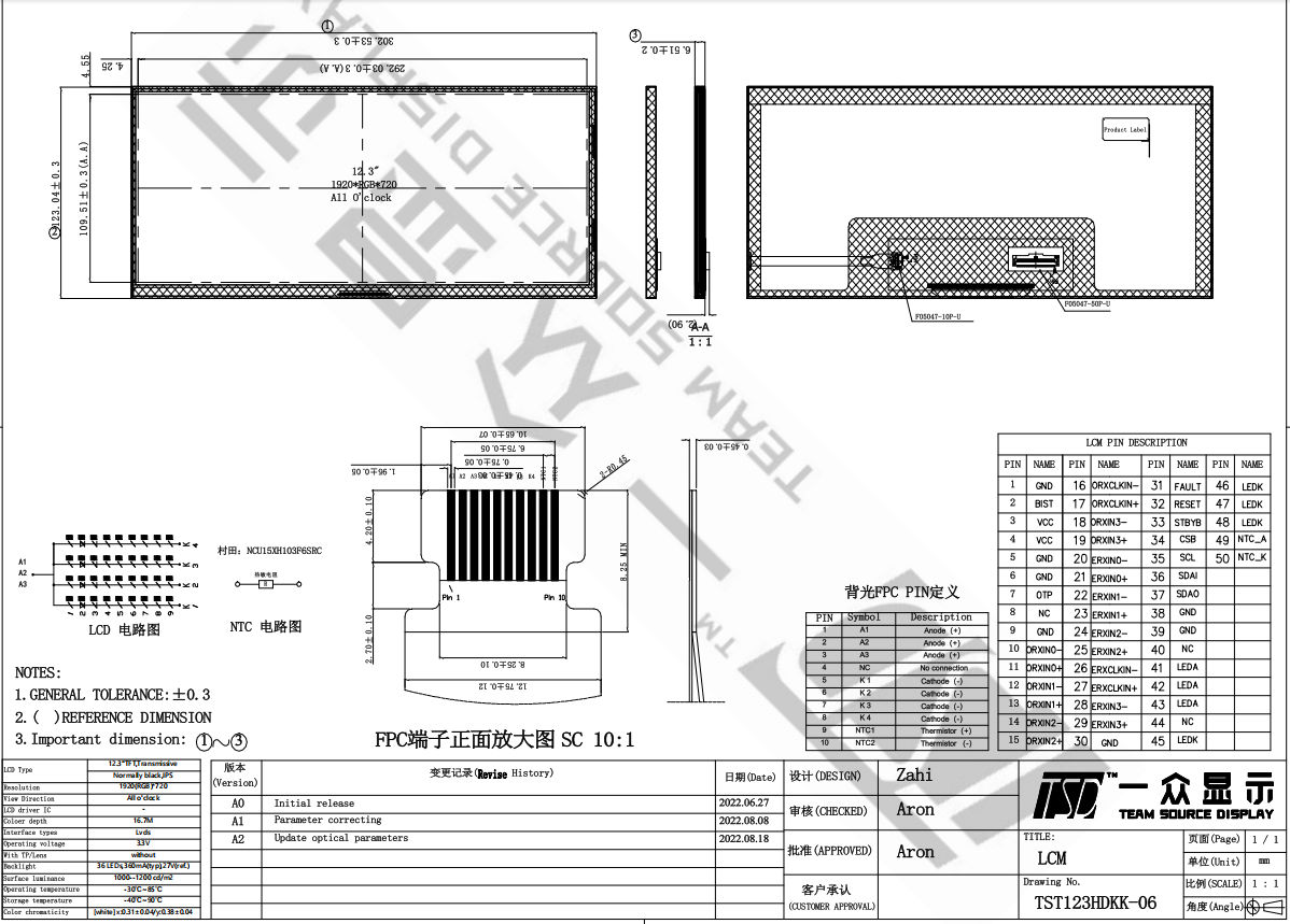 | LCD Type | a-Si TFT,Transmissive,Normally black |
