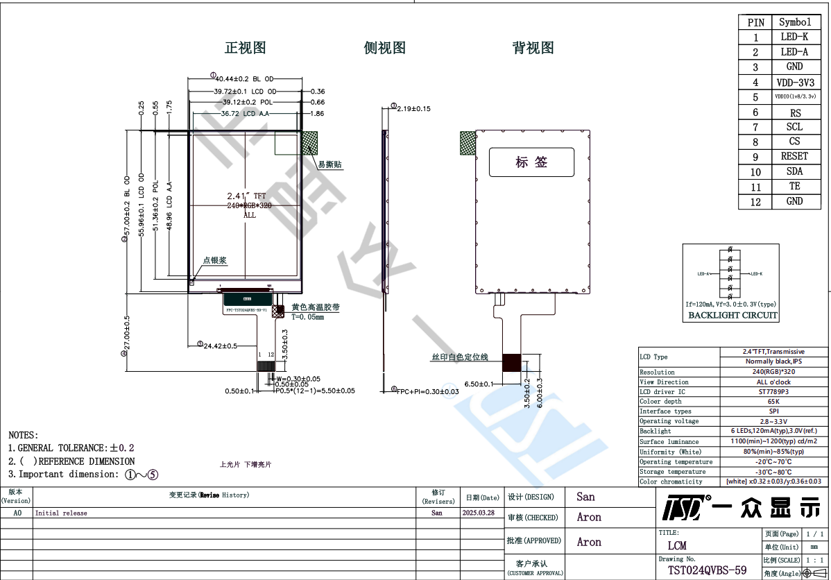 2.4 inch 240*320 High brightness 1200nits ST7789T3 SPI Interface IPS Screen Two Wheel Vehicle Dashboard Motorcycle EV Scooter TFT LCD Display Modules