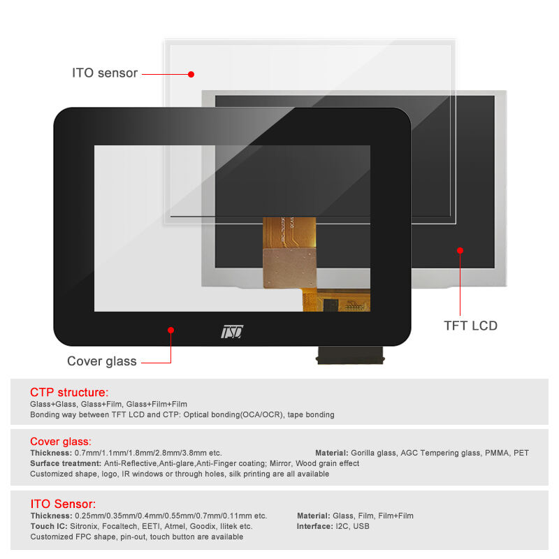 TSD has our own factory in Dongguan, we have some standard touch panel designs, and we can also customize different sizes, resolutions, and shapes of touch panels. We can produce not only resistive touch panel, but also capacitive touch panel. And we can make both optical bonding and air bonding. If you are looking for touch panels for your projects, pls feel free to contact us for more information.